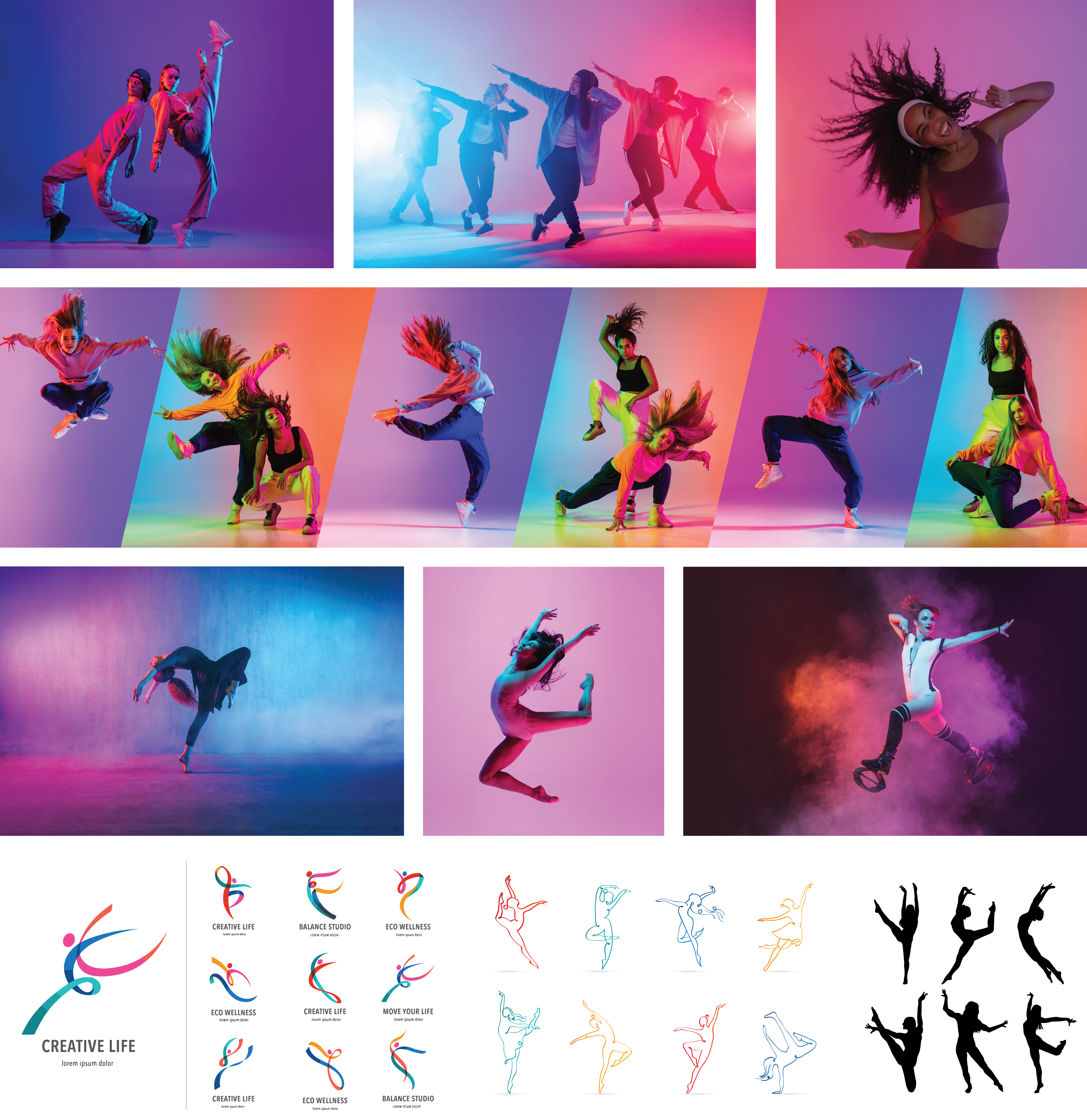 I chose images of A variety of dance types and outlines that convey energetic colors, joy, passion, and, most importantly, movement.